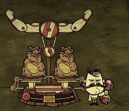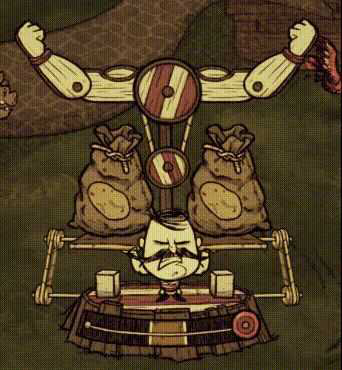 沃尔夫冈可以制作一个可消耗的哑铃,方便他边走边恢复力量。它不消耗饥饿值,而且可以当武器