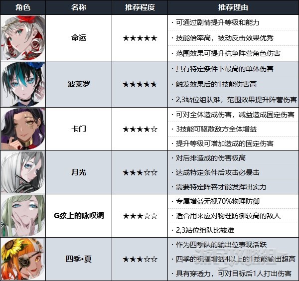 《宿命回响弦上的叹息》中除了三星角色,有些非常好用的一星二星角色也非常值得培养,下面就为大家带来《宿命回响弦上的叹息》低星角色培养推荐,希望对大家有所帮助。