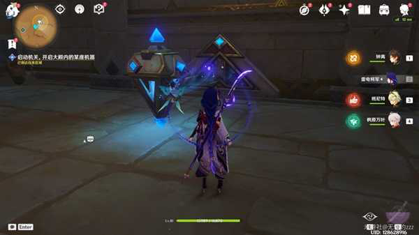 7.随后我们需要根据任务的指引,开启第一扇大门,如何开启大门,还是一样的方法,击打这个巨大的光柱机关,利用光线让沙堆消失