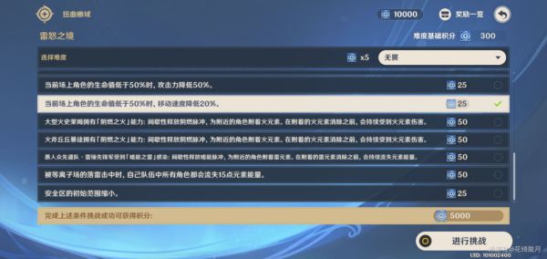 还是拿热身秘境来演示秘境独有机制吧~在雷怒之境及热身秘境中,旅行者开启挑战将会在挑战场地内形成雷场,如果走出雷场范围将会受到雷击伤害,会周期性给旅行者造成雷元素伤害并挂上雷元素~并且随着作战轮次的提升,雷场会不断缩小,雷击的伤害无法通过冲刺躲避,并且雷击不会对场地内怪物造成伤害,不过可以使用无敌帧进行回避~