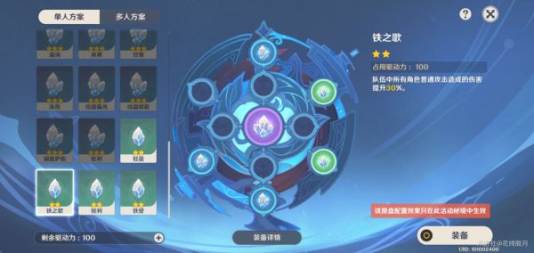 负重100,对于反应c提升相当巨大,迪卢克,胡桃,香菱,重云,公子带队均可选择该增益~