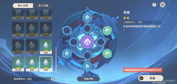 铁壁:绿色品质,可和其它品质一起装备,负重100,队伍护盾压力较大时可选~