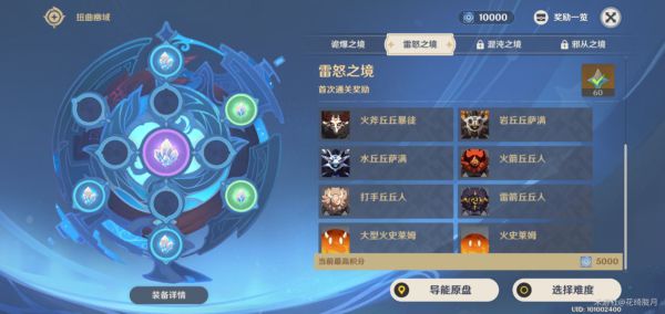 目前推荐使用温迪,公子,重云,甘雨,魈等角色进行攻坚,考虑到最后一波愚人众的配置,请自觉配备对应的破盾工具人,否则翻车本人概不负责……介于雷怒之境的环境特性,最好配备奶妈或者护盾系角色(因为到最后不出圈太难了……)