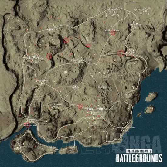 红点代表石头房子烂尾楼,红圈代表伏击圈,为什么要把烂尾楼标出来,很多玩家都特别钟爱完成了一天的城区拾荒和战斗后再去烂尾楼碰碰运气放松放松,打野队伍也特别钟爱烂尾楼,容易在第一圈毒后发生战斗,因为有三层高度的视野也适合伏击那些想捡漏的敌人。