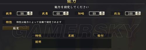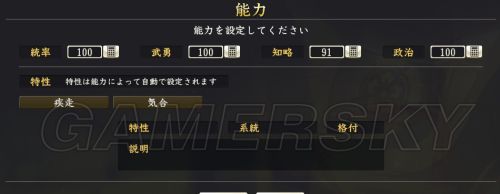 简单的说,就是跟能力总值以及某样单项有关系.比如统御100时,其他三样总值299,是远当(配属铁炮是部队攻击力加强).