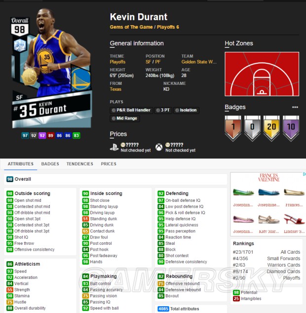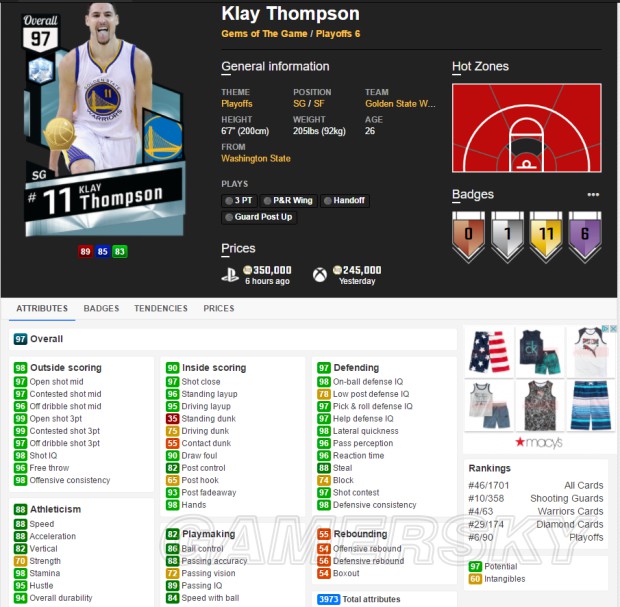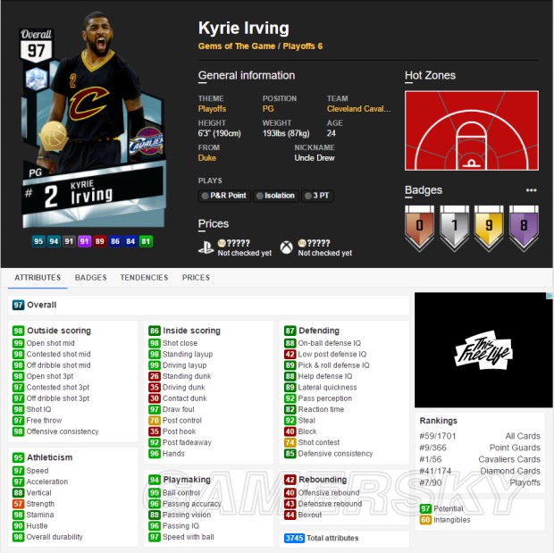 《NBA2K17》中骑士和勇士队都推出了一些新钻石卡,其中包括汤普森、库里、杜兰特、格林、詹姆斯以及欧文,那么这些卡片的数据如何呢?一起来看看《NBA2K17》骑士、勇士钻石卡数据一览吧!
