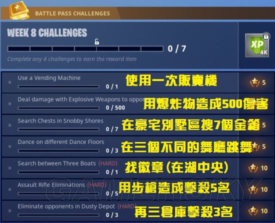 《堡垒之夜》的周挑战任务会给玩家很多丰富的奖励,但是任务也不是那么简单就能完成的,想要获得奖励还是要有所付出才行,下面请看由“zxczxc231”分享的《堡垒之夜》WEEK8、9及TIER100挑战任务一览,希望大家能够喜欢。