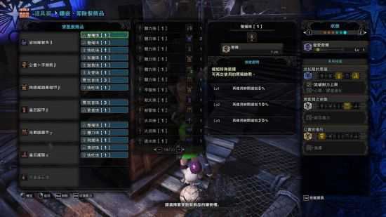 这个配装应该是目前最优解了,如果有更好的配装请回帖讨论。 看配装 三个二级孔放了整备3,意味着可以扔掉整备出:风压/耐震/奶瘴/收刀,配装灵活性简直无解,其它技能应有尽有,只看技能,勉强也能称之为邪教了吧。