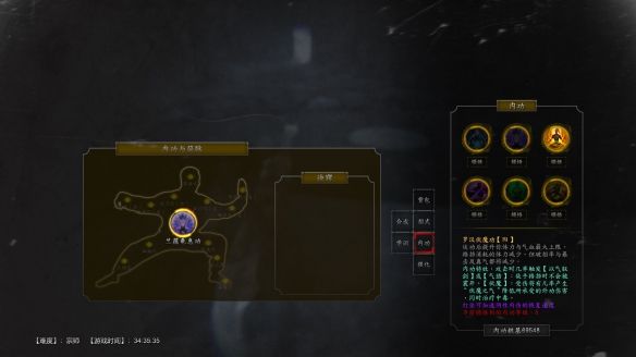 内功高强的敌人会对玩家造成内伤,内伤分为“阴”、“阳”与“重伤”。此时,需要根据不同伤势来服用药物或者运行不同的内功来调息疗伤,比如中了阳伤可以运行为阴属性的紫霞神功来进行治疗,打坐的过程会随机出现一个小游戏,把握时机按对的话可以加快疗伤进度,按错的话则会损失血量,连续失误甚至会造成角色死亡。内功疗伤系统本身非常贴合游戏的武侠主题,不过疗伤打坐的过程比较漫长,而随机出现的小游戏非常考验玩家的反应,因为失误而导致死亡的情况也较难避免,这有时会影响到游戏流程的节奏和流畅性。