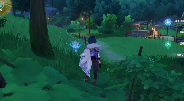 穿过小桥,在花丛里有2个晶蝶与2个丘丘人