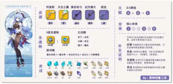 《原神》中甘雨是目前游戏中唯一有双重蓄力的弓系角色,强力的输出和独特的机制让很多玩家都很喜欢这名角色,还不知道怎么培养的玩家请看下面“Penta丶梦”分享的《原神》甘雨一图流培养攻略,希望能够帮助大家。