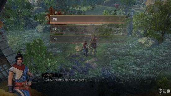 主角开始回想悬河剑法内容,依次选择“细密”、“汹涌”、“绵延”。