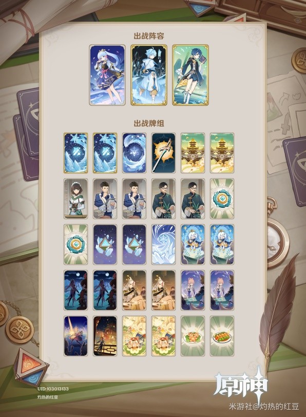 可替换的卡牌:凌华装备、武器、食物、「鹤归之时」、群玉阁等。考虑加入荒泷一斗「本大爷还没输!」、圣遗物等战术卡。