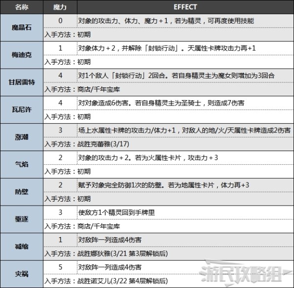 战斗的话,最初先适当让一些精灵牌入场,然后用【魔女】进行攻击。