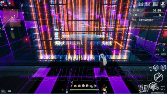 玩法:前方出现一排移动的激光,寻找缺口躲避激光即可得分。