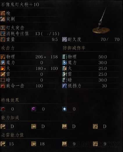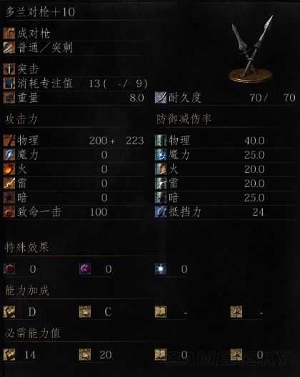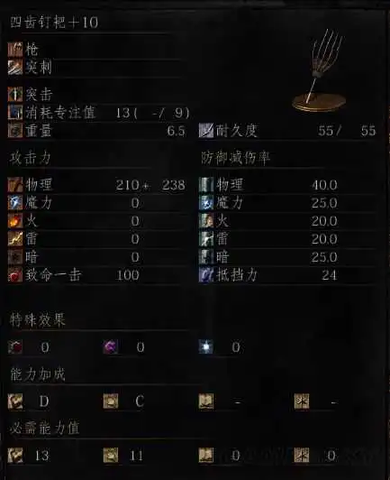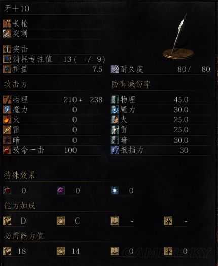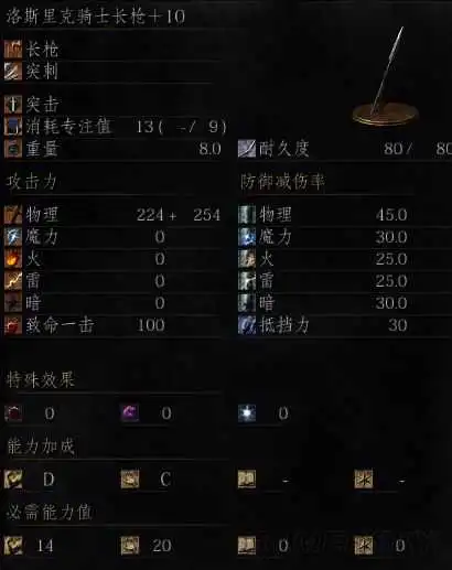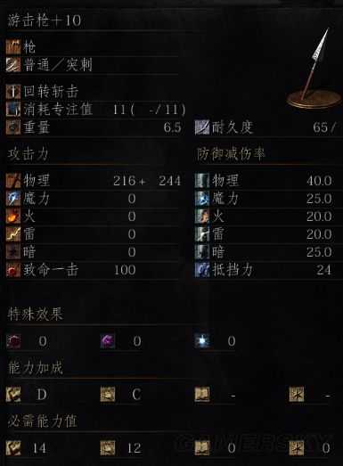 这把枪最大的优点就是帅,面板有点惨,出手比一般枪慢,很长,重攻击二连PVP可以起到压制对手的作用。跑动攻击是骑枪的突进。打流程可以用用,但是比较苦就是了。