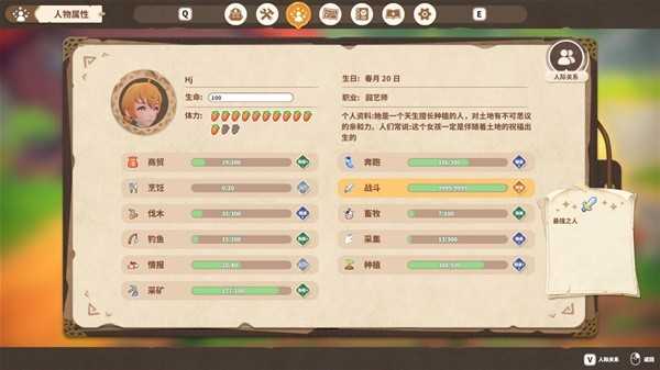 此外属性升级除了可以提升体力,还可以提升活动的效果,比如拾取和砍树时增加收获量,种地则是增加金色、银色和杂交果实的获得率(银色3倍价格、金色10倍价格)。