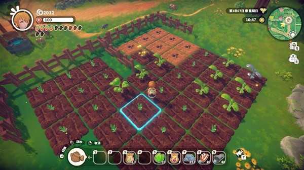 作为种田玩法的老玩家来说,《牧野之歌》肯定有很多既视感——开头一个房子几块地,地需要先耕地再播种再洒水等待作物成熟之后收割,周而复始,然后在田地的周围是树木、森林、河流、小溪、石头、大山,以及一个生活着其他居民,可以进行各种交易的小镇......尤其是田地边上有个收货箱,每天5点之前放东西进去,第二天一早可以收到酬金的既视感也太强了(100% = 符文工房5)。
