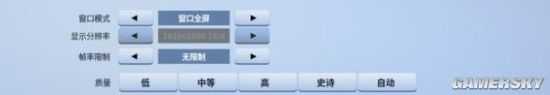 质量分为低、中等、高、史诗和自动,质量关系到游戏的整体效果,可以细分到每一项调整(下面会介绍到),当然电脑配置好的小伙伴可以直接设置史诗。