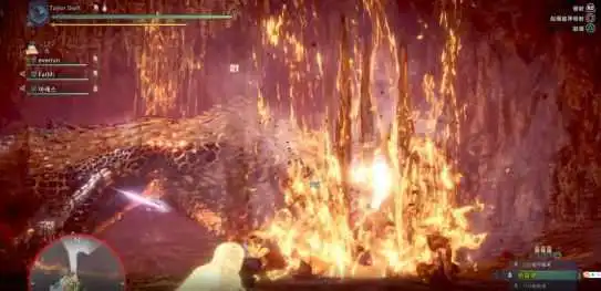 半站立状态开始进行环状的150°喷火吐息,有持续热伤害。