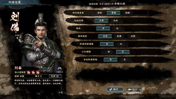 地图初始设定(本作新增的士兵增加模式,开启后可让战场更真实,武将不再以一敌百,带兵数量和兵种更能影响战局,让战斗更注重策略性)