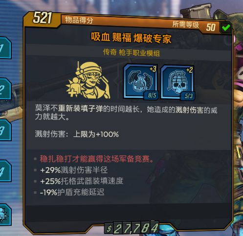 然后模组肯定选爆破专家了 要的就是溅射伤害,也能加点手雷的伤害(六角现在伤害太低了),配合六角回弹基本全程不会换单,我这个词条不是很好,我就这一个,也是偶尔打到了,应为主玩的是魔女,所以莫泽没有刷装备。