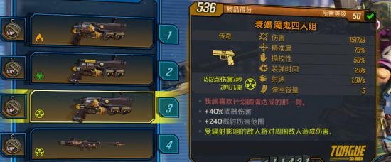 然后武器所有能爆炸的武器都行。托格厂的除粘单枪(因为不换单)。雅各布斯的毁灭公爵也行,不过大多都是玩具枪,看看就行。我推荐还是这个魔鬼四人组,伤害高,效果棒(爆炸范围大)下面的杰里科切迫击炮模式用来玩玩就好,持续输出不够,人多的时候就切出来轰几发(注意别把自己炸死了)。