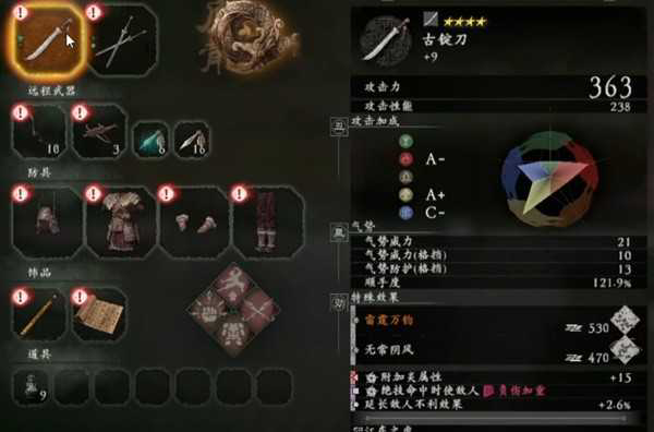 首先我们知道在卧龙这款游戏里面,影响武器攻击力的参数主要有两种。第一呢就是武器本身附带的数值,它会随着我们在铁匠铺的强化进行提升。