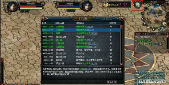 玩家可以在界面中活动按钮,查看当日所有活动的时间以及活动地点。