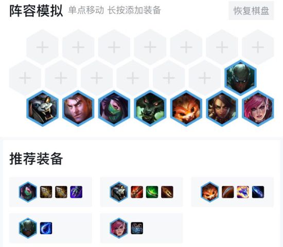 对于在之前版本有过狂野刺基础的棋友,笔者这里就先直接贴出最终成型站位图,其中的装备选择都是笔者个人认为最适合当前版本的。