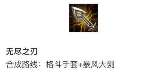 对于新手,我介绍一下自己的前期运营。首先,狂野刺的核心是无尽,当你在打完三波野怪后,拥有大剑+拳套,那么我才建议走这套阵容。
