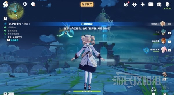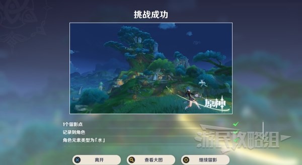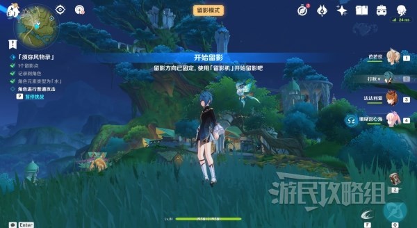 传送到离渡谷左侧传送锚点,然后前往拍照地点。确保队伍中有一名水元素角色,从背包中装备小道具留影机,与留影点互动。