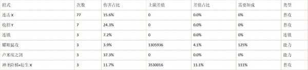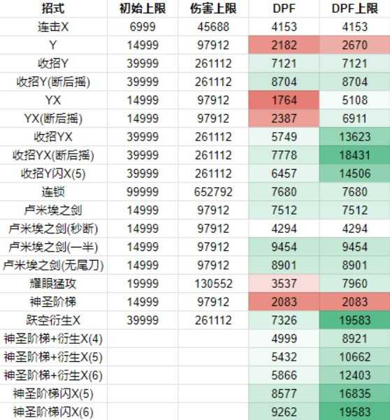 通过分析DPF发现,伤害最高的是收招YX和收招Y,其次才是技能耀眼猛攻和卢米埃之剑,最后是X连击。