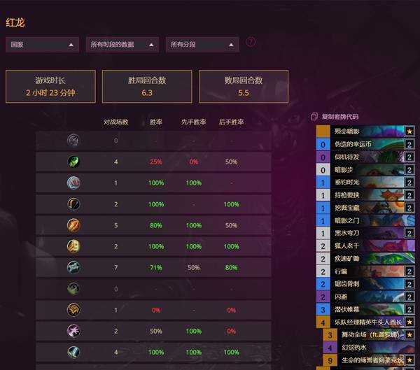 龟法:小优,给足压力让对面一回合挂一个冰箱直到后继乏力,红龙贼是可以做到无限斩杀的,当然对面要是无限了就算他赢