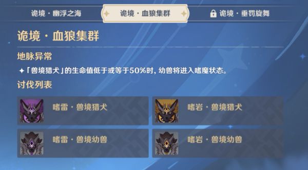 地脉异常:兽境猎犬生命小于等于50%时,幼兽进入嗜魔状态