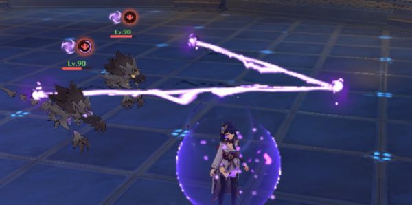 就是下面介个啦~召唤的雷光矩阵会出现在旅行者身边对旅行者造成阻碍