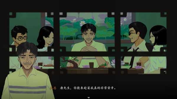 游戏包含了序章和四个后续章节,以第二章的“莲花酒店饭局”为例——这一段是故事揭盖子的开始:看似和气但城府极深的王总、和王总貌合神离的秘书&集团接班人苏沁真、狡猾残忍的杨伯鸿、打假专家唐雷唐雨兄妹在莲花酒店摆开了一桌“鸿门宴”,每个人都别有用心,每个人都暗自有动机和计划,以酒局作为“连接点”,展开了一场非常精彩的群像剧。