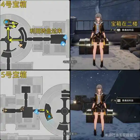 4号宝箱需要利用转盘的“控制装置”才能抵达,宝箱在2楼的尽头,接着来到“禁区前线”传送点,在地图右边拿到5号宝箱。