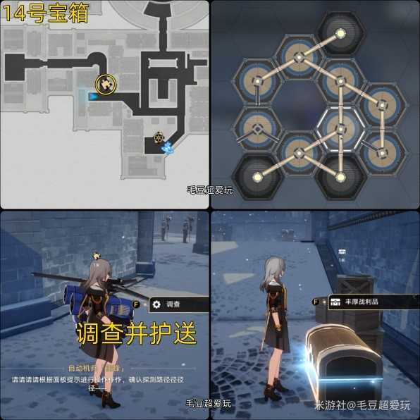 下图毛豆已经整理好了解谜的位置,以及谜题的答案,不想动脑的可以直接“抄答案”,解谜+护送之后即可拿到最后一个宝箱。