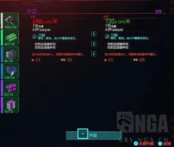 它更多的作为一个相同武器的比较。而不同武器选择,更多的是关注白字。