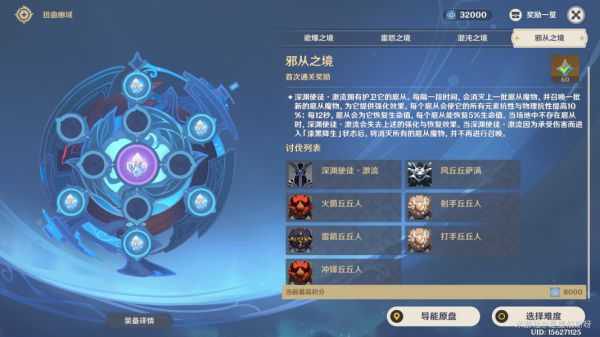 然后说一下我的这套配队的打法:开局钟离先开盾,然后行秋开大,这时候不用管使徒,站在随从刷新的位置。切砂糖A一下挂水,然后开大聚怪,钟离再开大补个伤害兼控场,再切回胡桃EQ直接秒。这一套下来,随从全部死完,这时候的使徒大概也掉了三分之一左右的血,然后胡桃对着使徒一顿输出,基本上就能直接打出盾,这时候大概还剩个两分多钟,只要不死,慢慢破盾即可。这里要注意,从开始的第一波随从被秒,到下一波刷新大概有个十几秒的时间,这段时间一定要打出盾来,不然等随从刷新,使徒的双抗提升,血量也会慢慢回上来。