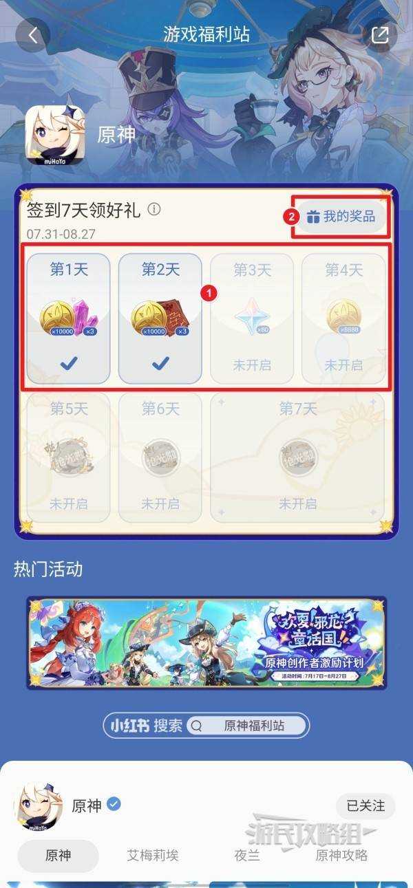 - 参与方法:搜索”原神福利站“,顶部卡片可进入活动。福利站在每个版本开放,奖励按照版本节点更新,具体签到日期长度以活动上线为准。用户每日进入活动,可进行一日签到,领取签到奖励,无法超前签到。奖品数量有限,先到先得