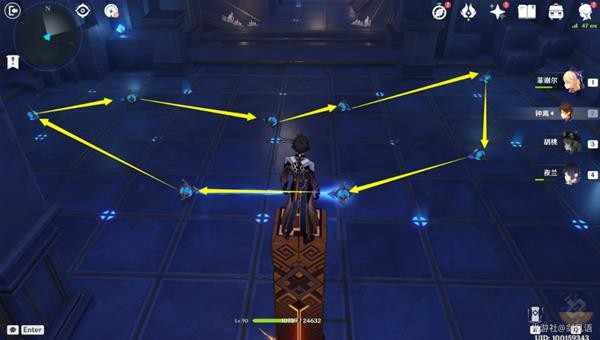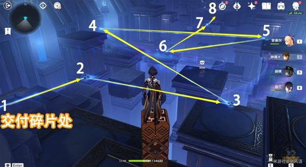 10.按照下图操作,有8个机关,从交付碎片处开始,把机关转到箭头方向,然后攻击机关发射光线,连接到一起,完成获得一个精致的宝箱(2房间的宝箱收集完)。