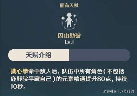 5.【因由勘破】E技能命中敌人,队伍其他角色获得80点元素精通。提升平藏的辅助能力。