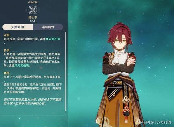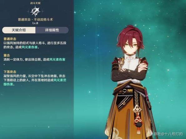 1.普攻和重击均为弱风元素,普攻在1、4、7次攻击可以触发扩散反应。普攻伤害倍率比较感人,如果喜欢驻场平A,建议带上云堇来增伤。