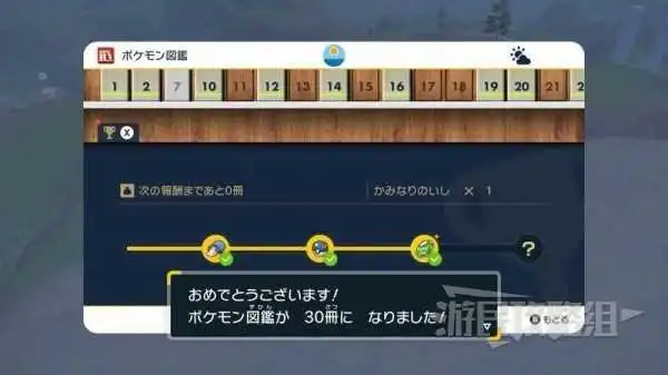 捕捉并完成帕底亚图鉴中列出的全部共400只宝可梦,可以获得「闪耀护符」和「究极球」。「闪耀护符」可以提升闪光宝可梦的出现几率(变为3倍),也就是从正常概率1/4096(约0.025%)增长为1/1365(约0.075%)。不过由于原本概率就较低,基本上增加之后变化也不会很明显。