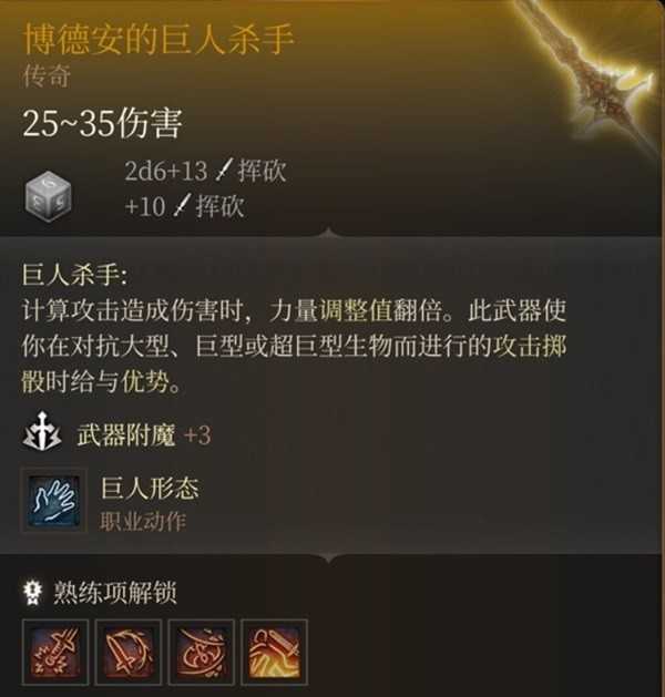 巨人杀手在第三章从巨龙安苏身上获得,一般可以作为近战毕业武器使用。