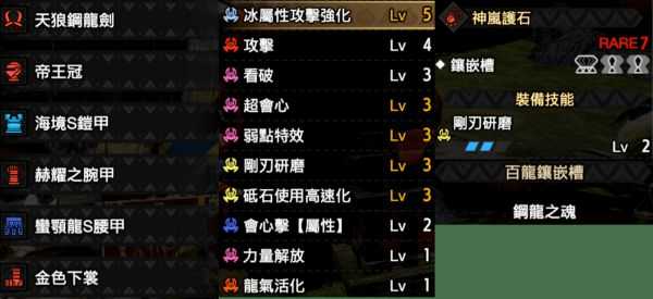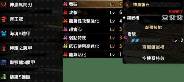 若非则天彗套迅龙或是风神,风神内建长蓝斩,搭上研磨三打得舒服。