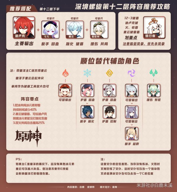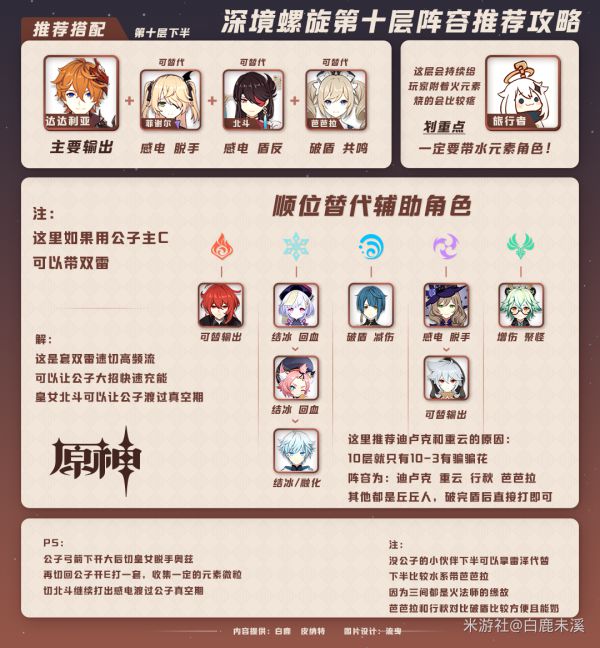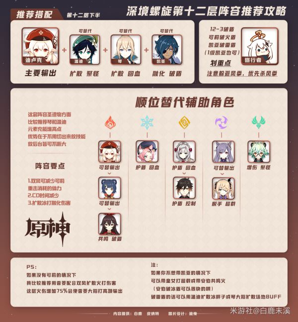 《原神》中深境螺旋是一个难度很高的副本,后面的几层很多练度够的玩家却打不过去,很有可能是打法思路上有问题导致的,缺少打法思路的玩家请看下面“白鹿未溪”分享的《原神》深境螺旋10-12层打法思路,希望能够帮助大家。