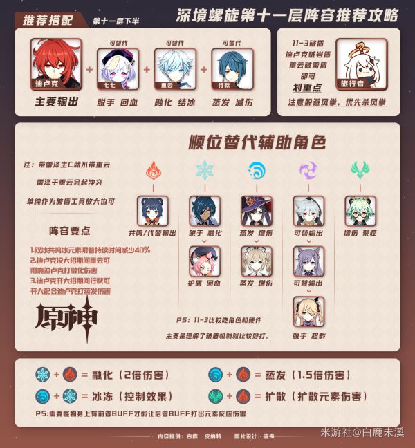 (如果用香菱主C的旅行者注意11-3有个岩盾需要破,如果想抢伤害可以拿皇女副C打超载破盾)